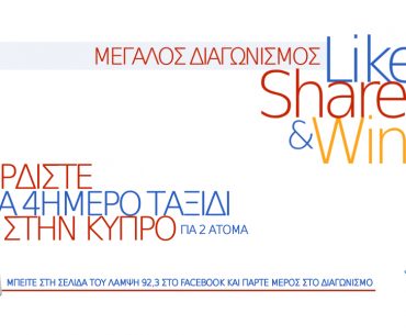 Ο ΛΑΜΨΗ 92,3 – www.lampsifm.com διοργανώνει διαγωνισμό και σας δίνει τη δυνατότητα να κερδίσετε 4ημερο ταξίδι στην Κύπρο! Αεροπορικά εισιτήρια διαμονή με πρωινό στο 5άστερο Coral Beach Hotel & resort στην Πάφο μεταφορά από και προς το αεροδρόμιο για ένα τυχερό ζευγάρι!