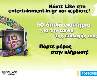 Το in.gr σε συνεργασία με την POSTCREDIT, αφουγκραζόμενο την ανάγκη σας για διασκέδαση και τις δυσκολίες που όλοι αντιμετωπίζουμε καθημερινά, προσφέρει σε 50 τυχερούς, από ένα διπλό εισιτήριο για να παρακολουθήσουν τις αγαπημένες τους ταινίες στα Village Cinemas, όποτε οι ίδιοι επιθυμούν, έως τις 31/12/2013.