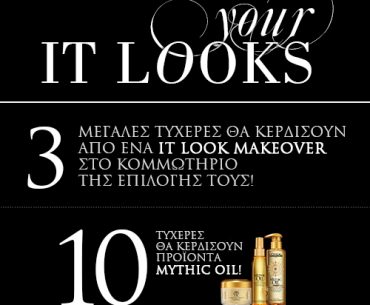 H σελίδα L’Oreal Professionnel Greece διοργανώνει διαγωνισμό και χαρίζει στους 3 πρώτους τυχερούς από μία περιποίηση μαλλιών (βαφή, κούρεμα και χτένισμα) και στους υπόλοιπους 20 από ένα σετ περιποίησης μαλλιών «Mythic Oil» (σαμπουάν, μάσκα μαλλιών και λάδι περιποίησης μαλλιών).