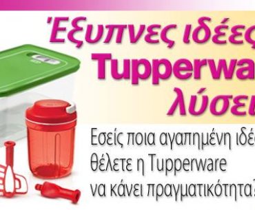 Η σελίδα Tupperware Greece διοργανώνει διαγωνισμό και δίνει τη δυνατότητα σε 5 τυχερούς να κερδίσουν από μια χύτρα της σειράς Chef Series και σε 20 ακόμα τυχερούς από δέκα 10 προϊόντα Tupperware.