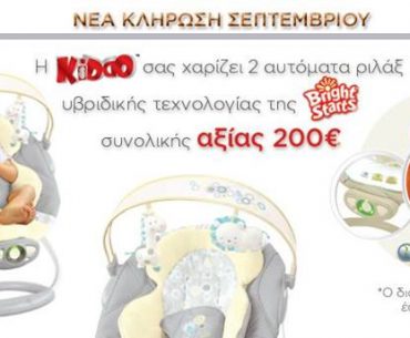 Το Kiddo διοργανώνει διαγωνισμό και σας δίνει τη δυνατότητα να κερδίσετε 2 αυτόματα ριλάξ υβριδικής τεχνολογίας της Bright Starts αξίας 200€.