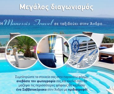 Το manessistravel.gr διοργανώνει διαγωνισμό και σας δίνει τη δυνατότητα να κερδίσετε 1 Σαββατοκύριακο στην Άνδρο για 2 άτομα με ημιδιατροφή στο ξενοδοχείο Perrakis Hotel!