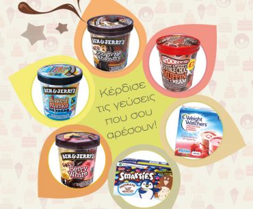 Τα Super Market Thanopoulos διοργανώνουν διαγωνισμό και δίνουν τη δυνατότητα σε 3 νικητές να διαλέξουν 4 παγωτά της αρεσκείας τους μεταξύ των: Ben&Jerry’s Dough-ble Whammy, Ben&Jerry’s Baked Alaska, Ben&Jerry’s Berry White, Spoony’s Double Choc Muffin, Weight Watchers Strawberry & Raspberry, Smarties Penguin Party.
