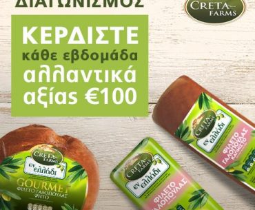 Η σελίδα Creta Farms Greece διοργανώνει διαγωνισμό και σας δίνει τη δυνατότητα να κερδίσετε κάθε εβδομάδα αλλαντικά Creta Farms αξίας 100 ευρώ.