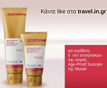 Οι “Διακοπές”, σε συνεργασία με τη Murad, προσφέρουν σε έξι τυχερούς αναγνώστες τους, από ένα σετ αντιηλιακών της σειράς Age-Proof Suncare. H σειρά αποτελείται από μια αντιηλιακή κρέμα προσώπου υψηλής προστασίας και μια αδιάβροχη αντιηλιακή σύνθεση προσώπου και σώματος.