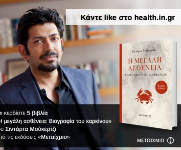 Το health.in.gr σας προσκαλεί στο προφίλ του στο Facebook και σας δίνει τη δυνατότητα να κερδίσετε πέντε αντίτυπα του βιβλίου «Η μεγάλη ασθένεια: Βιογραφία του καρκίνου», του Σιντάρτα Μούκερτζι, προσφορά των εκδόσεων Μεταίχμιο.