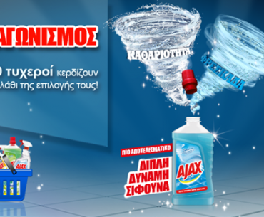 Τα ΑΒ Βασιλόπουλος διοργανώνουν διαγωνισμό και δίνουν τη δυνατότητα σε 40 τυχερούς να κερδίσουν από 1 δωροκουτί με τα 7 προϊόντα AJAX που οι ίδιοι διάλεξαν.