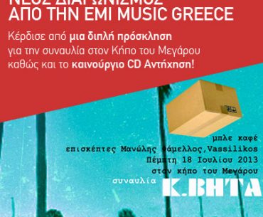 Η EMI Music Greece διοργανώνει διαγωνισμό και σας δίνει τη δυνατότητα να κερδίσετε από μια διπλή πρόσκληση για την συναυλία του Κ.ΒΗΤΑ στον Κήπο του Μεγάρου καθώς και το καινούργιο CD του Κωνσταντίνου – Αντήχηση.