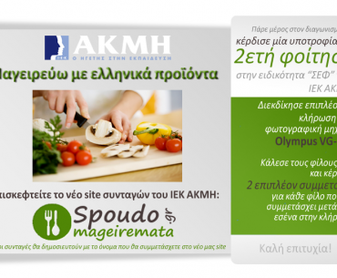 Το ΙΕΚ ΑΚΜΗ διοργανώνει διαγωνισμό και σας δίνει τη δυνατότητα να κερδίσετε μία υποτροφία για 2ετή φοίτηση στην ειδικότητα “ΣΕΦ” του ΙΕΚ ΑΚΜΗ ή μια φωτογραφική μηχανή Olympus VG-160.
