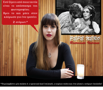 Το ιταλικό εστιατόριο Pepe Nero διοργανώνει διαγωνισμό και σας δίνει τη δυνατότητα να κερδίσετε ένα τραπέζι για 2 άτομα.