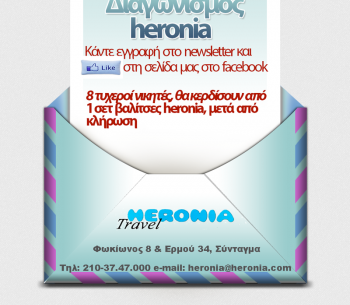Το Heronia Travel διοργανώνει διαγωνισμό και δίνει τη δυνατότητα σε 8 τυχερούς νικητές που να κερδίσουν από 1 σετ βαλίτσες.
