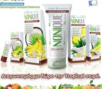 Η nonique.gr προσφέρει σε μια τυχερή μια ολοκληρωμένη σειρά φροντίδας προσώπου-σώματος των πιστοποιημένων βιολογικών καλλυντικών Nonique, που αποτελείται από 6 προϊόντα : 1 Ενυδατικό Serum Προσώπου, 1 Serum Ματιών, 1 Κρέμα Καθαρισμού Προσώπου, 1 Αφρόλουτρο, 1 Γαλάκτωμα Σώματος, 1 Βάλσαμο Χειλιών. Κόστος του δώρου 30,70€