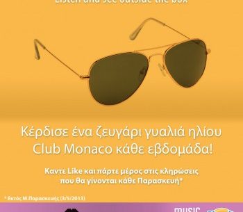 Το πιο outside the box ραδιόφωνο σας δίνει τη δυνατότητα να κερδίσετε ένα ζευγάρι γυαλιά ηλίου Club Monaco κάθε εβδομάδα! Μπείτε στο ειδικό application που θα βρείτε στη σελίδα του Facebook του Biscuit, συμπληρώστε τα στοιχεία σας και πάρτε μέρος στις κληρώσεις που θα γίνονται κάθε Παρασκευή.