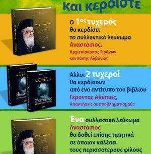 Οι Eκδόσεις Επτάλοφος διοργανώνουν διαγωνισμό και σας δίνουν τη δυνατότητα να κερδίσετε 3 βιβλία, ένα συλλεκτικό λεύκωμα «Αναστάσιος» και 2 αντίτυπα του βιβλίου «Γέροντας Αλύπιος».