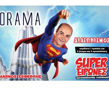 To homefood.gr διοργανώνει διαγωνισμό και σας δίνει τη δυνατότητα να κερδίσετε ένα τραπέζι για 4 άτομα με φιάλη των 120€ και 5 προσκλήσεις των 2 ατόμων για το Μουσικοθεατρικό Υπερθέαμα “SUPER ΕΙΡΩΝΕΣ”, στο ORAMA στην Θεσσαλονίκη, στις 12 Μαΐου!