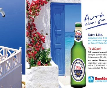 Η σελίδα Pils Hellas διοργανώνει διαγωνισμό και σας καλεί να απαντήσετε σε τρεις απλές ερωτήσεις σχετικά με τη μπίρα και να μπείτε στην κλήρωση για 50 συσκευασίες (24 κουτάκια εκάστη) Pils HELLAS και 20 δωροεπιταγές αξίας €30,00 από τα supermarkets ΑΒ ΒΑΣΙΛΟΠΟΥΛΟΣ.