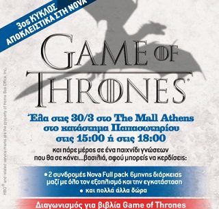 Η σελίδα Game Of Thrones – Nova διοργανώνει διαγωνισμό και σας δίνει τη δυνατότητα να κερδίσετε το βιβλίο «Θύελλα από ατσάλι: Παγωμένες λεπίδες» του Game Of Thrones.