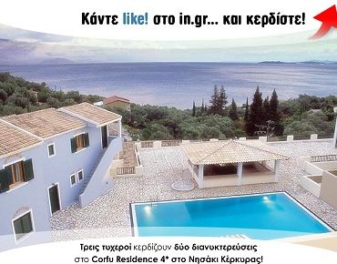 Το in.gr σε συνεργασία με το ξενοδοχείο Corfu Residence 4* προσφέρει σε τρεις τυχερούς μια τριήμερη διαμονή στο μαγευτικό νησί των Φαιάκων, την Κέρκυρα.