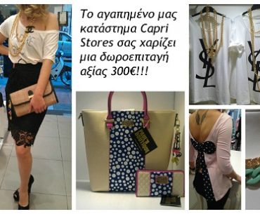 Οι σελίδες Style in Athens & Capri stores διοργανώνει διαγωνισμό και σας δίνει τη δυνατότητα να κερδίσετε ρούχα και παπούτσια αξίας 300€.