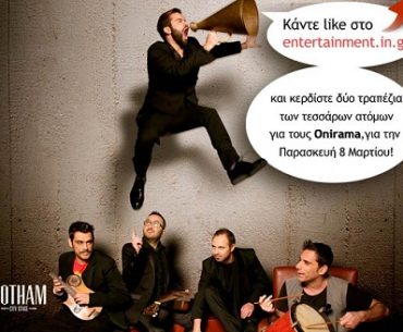 To in.gr και το Gotham City Stage, δίνουν την ευκαιρία σε δύο τυχερούς να κερδίσουν μια βραδιά στη μουσική σκηνή που εμφανίζεται το αγαπημένο του νεανικού κοινού συγκρότημα των Onirama, στην παράσταση “Back in Athens”.