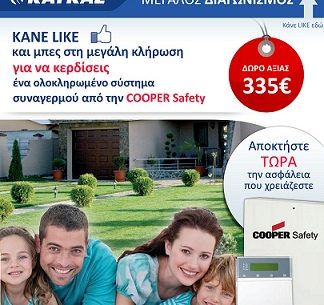 Η σελίδα ΚΑΥΚΑΣ Ηλεκτρολογικό υλικό & φωτισμός διοργανώνει διαγωνισμό και σας δίνει τη δυνατότητα να κερδίσετε ένα ολοκληρωμένο σύστημα ενσύρματου συναγερμού της COOPER SAFETY αξίας 335€.