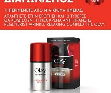 Το Marie Claire Greece διοργανώνει διαγωνισμό και σας δίνει τη δυνατότητα να κερδίσετε 10 κρέμες Regenerist Wrinkle Relaxing Complex της Olay.