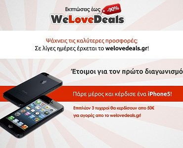 Το welovedeals.gr διοργανώνει διαγωνισμό και σας δίνει τη δυνατότητα να κερδίσετε 1 iPhone5 και 3 δωροεπιταγές αξίας 50 euro για αγορές από το welovedeals.gr.
