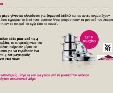 Η σελίδα MISKO διοργανώνει διαγωνισμό και σας δίνει τη δυνατότητα να κερδίσετε 50 πακέτα ζυμαρικών Misko κάθε μέρα και 1 σετ σκευών μαγειρικής κάθε εβδομάδα.