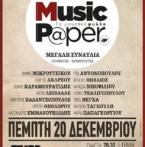 To Music Paper αγαπά τους αναγνώστες του Dolce Vita και προσφέρει σε τρεις τυχερούς αναγνώστες από μία διπλή πρόσκληση για τη συναυλία.