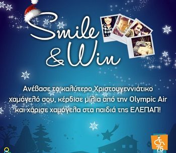Ανέβασε το χαμόγελό σου και κέρδισε! Κάθε μέρα η Olympic Air μοιράζει 100.000 μίλια σε 10 τυχερούς! Ταυτόχρονα βοηθάς τα παιδιά της ΕΛΕΠΑΠ. Όσο αυξάνονται τα χαμόγελα τόσο αυξάνεται και το ποσό που δωρίζει η Ολυμπιακή στον οργανισμό!