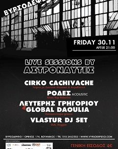 Το Qubo.gr διοργανώνει διαγωνισμό και σας δίνει τη δυνατότητα να κερδίσετε 8 διπλέ προσκλήσεις για την νέα μουσική παραγωγή της ομάδας Αστροναύτες, Live Sessions, στο Παλιό Βυρσοδεψίο, την Παρασκευή 30/11.