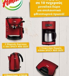 Η Amita διοργανώνει διαγωνισμό και σας δίνει τη δυνατότητα να κερδίσετε 2 Μηχανές EspressoC-201, 1 ΚαφετέριαΘερμός4206A, 4 Βραστήρες17SO2B και 3 Τοστιέρες Ι-13 SPICY RED IZZY.