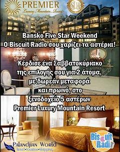 O Βiscuit Radio σε συνεργασία με το Palandjian World Travel Agency χαρίζει σε εσάς και τον/την φίλο/η σας ένα Σαββατοκύριακο της επιλογής σας, με δωρεάν μεταφορά και πρωινό, στο πεντάστερο Premier Luxury Mountain Resort στο Μπάνσκο της Βουλγαρίας.