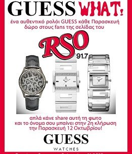 Ο 91.7 RSO διοργανώνει διαγωνισμό και σας δίνει τη δυνατότητα να κερδίσετε ένα αυθεντικό ρολόι Guess κάθε εβδομάδα.