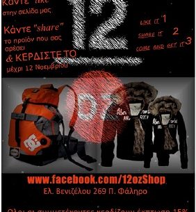 Η σελίδα του 12oz. διοργανώνει διαγωνισμό και σας δίνει τη δυνατότητα να κερδίσετε μια τσάντα DC και μια ζακέτα abercrombie.