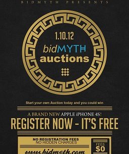 Το BidMyth είναι μια NEA ιστοσελίδα δημοπρασιών και αγοραπωλησιών απευθυνόμενη σε ιδιώτες ή επαγγελματίες με όρεξη για αντικείμενα ιδιαίτερα, σπάνια, vintage, συλλεκτικά ή και πολυτελή. H δημοσίευση προσφοράς είναι δωρεάν. Δεν υπάρχει χρέωση, όσα προϊόντα κι αν ανεβούν. Για να το γιορτάσουμε σας δίνουμε την δυνατότητα να κερδίσετε ένα ολοκαίνουργιο, μαύρο iPHONE 4S 64GB.