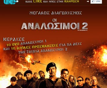 Η ODEON διοργανώνει διαγωνισμό και σας δίνει τη δυνατότητα να κερδίσετε 10 DVD “Αναλώσιμοι 1” και 10 διπλές προσκλήσεις για την ταινία “Αναλώσιμοι 2”.