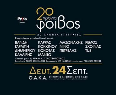 Το cheapis.gr σας προσφέρει τη δυνατότητα να απολαύσετε το δημοφιλή συνθέτη Φοίβο και σπουδαίους Έλληνες ερμηνευτές σε μία μοναδική συναυλία γεμάτη μουσική, τραγούδια και επιτυχίες, την Δευτέρα 24 Σεπτεμβρίου στο Ο.Α.Κ.Α.