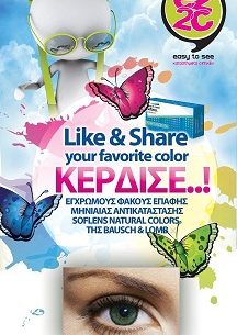 Το EZ2C διοργανώνει διαγωνισμό και σας δίνει τη δυνατότητα να κερδίσετε το αγαπημένο σας χρώμα από τους έγχρωμους φακούς επαφής μηνιαίας αντικατάστασης SofLens Natural Colors της Bausch & Lomb.