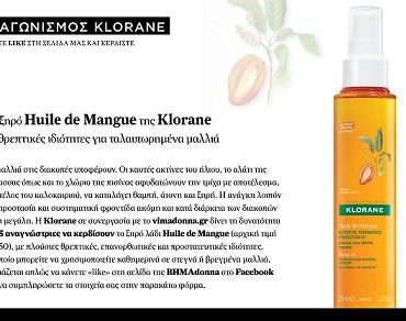 Το BHMAdonna διοργανώνει διαγωνισμό και σας δίνει τη δυνατότητα να κερδίσετε το ξηρό λάδι Huile de Mangue της Klorane.