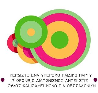 Το Kids Party διοργανώνει διαγωνισμό και σας δίνει τη δυνατότητα να κερδίσετε ένα υπέροχο παιδικό πάρτυ (στη Θεσσαλονίκη) με πολλά παιχνίδια, χορό, τραγούδια, ζωγραφική προσώπου, τατουάζ, κατασκευές με μπαλόνια και πολλά πολλά άλλα.