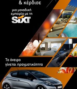 Η σελίδα Sixt Greece διοργανώνει διαγωνισμό και δίνει τη δυνατότητα σε 11 τυχερούς να επιλέξουν ένα από τα ξενοδοχεία της λίστας και να διεκδικήσουν 2ήμερη ή 3ήμερη διαμονή εκεί και ένα αυτοκίνητο Peugeot για τις μετακινήσεις τους καθώς και δείπνο ή πρωινό.