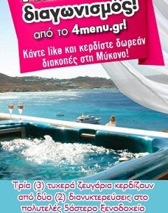 Το 4menu.gr διοργανώνει διαγωνισμό και δίνει τη δυνατότητα σε 3 τυχερούς να κερδίσουν από 2 δωρεάν διανυκτερεύσεις στο πολυτελές ξενοδοχείο 5* Apollonia Resort της Μυκόνου.