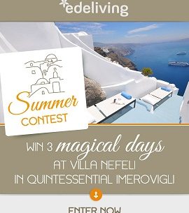 Το Edeliving διοργανώνει διαγωνισμό και σας δίνει τη δυνατότητα να κερδίσετε 3 μέρες για 2 άτομα στην μαγευτική βίλα Νεφέλη στο πιο ρομαντικό νησί των Κυκλάδων: τη Σαντορίνη.
