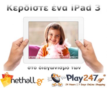 Χθες έγινε η κλήρωση του Μεγάλου Διαγωνισμού του Nethall.gr και του Play247.gr για το Apple New iPad 3, στα γραφεία του Play247.gr στο Μαρούσι (δείτε το σχετικό βίντεο της κλήρωσης μέσα στο άρθρο). Τα αποτελέσματα είναι τα εξής:
