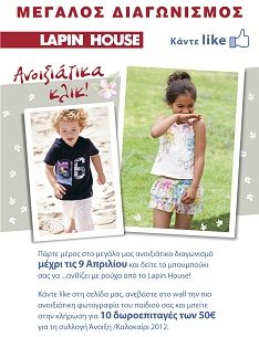 Η σελίδα Lapin House διοργανώνει διαγωνισμό και δίνει τη δυνατότητα σε 10 τυχερούς να κερδίσουν από μια δωροεπιταγή των 50 ευρώ.