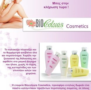 Η σελίδα Biocolours Cosmetics διοργανώνει διαγωνισμό και σας δίνει τη δυνατότητα να κερδίσετε ένα Πακέτο καλλυντικών προϊόντων περιποίησης σώματος αξίας 155,00€.