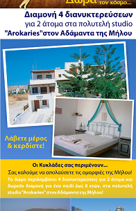 Οι Κυκλάδες σας περιμένουν. Λάβετε μέρος στον διαγωνισμό του καταστήματος Δώρων απ’όλο τον κόσμο “ΡΕΜΒΗ” και κερδίστε 4 διανυκτερεύσεις για 2 άτομα και δωρεάν διαμονή για ένα παιδί έως 8 ετών, στα πολυτελή studio “Arokaries” στον Αδάμαντα της Μήλου.