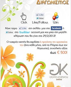 Μεγάλος διαγωνισμός Gianna Kazakou Online με έπαθλο τα παπούτσια όλης της νέας σαιζόν! Ο τυχερός νικητής θα κερδίσει 6 προϊόντα της αρεσκείας του (ένα κάθε μήνα, από το Μάρτιο έως τον Αύγουστο), συνολικής αξίας έως €500!