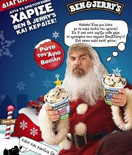 Ο Αγιος Βασίλης έχει μια λίστα με τα καλά παιδιά της χρονιάς. Μπείτε τώρα στην εφαρμογή της σελίδας Ben & Jerry’s στο facebook και ρωτήστε τον αν είστε στη λίστα του! Κάθε μέρα πέντε (5) τυχεροί θα κερδίζουν 4 μπάλες παγωτού Ben&Jerry’s.